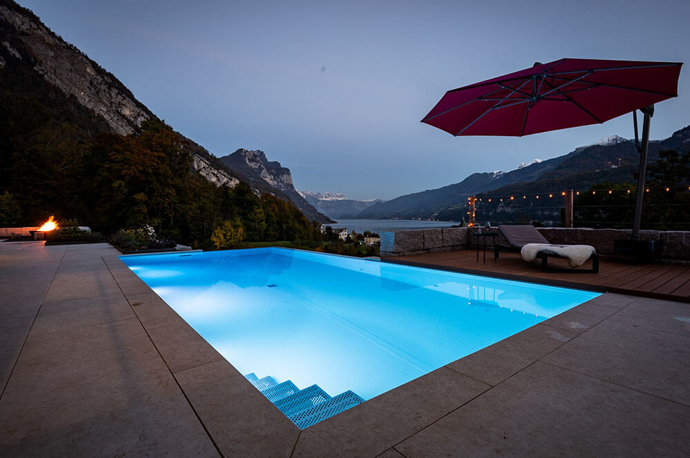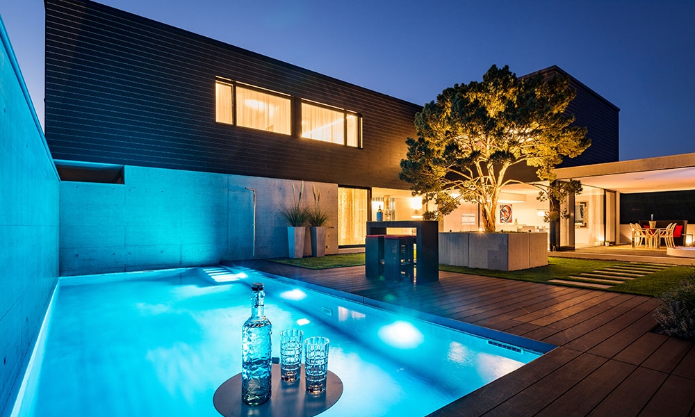Wenn das Wasser leise plätschert, den Körper sanft umhüllt und die Umgebung in dezentes Licht getaucht wird, dann fällt es leicht, den Alltag hinter sich zu lassen. Modernste Halogen-, LED- und Power-LED-Systeme mit Lichtwechsler tauchen Ihren Pool in ein fantastisches Farbenmeer. Wählen Sie aus einer Vielzahl von Farbspektren von einer punktuellen Akzentuierung bis hin zur Illumination der gesamten Wasseroberfläche.