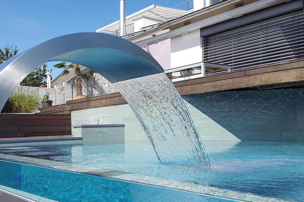 Mit dem neu entwickelten LUXSA® Turbinengehäuse Maxima wird der Wasserstrom dank neun vertikalen und zwei horizontalen Strömungshilfen optimal ins Schwimmbad geleitet. Die Ansaugöffnung befindet sich im darunterliegenden Rollladenschacht und das Wasser wird über die ganze Beckenbreite angesaugt. Dadurch werden Strömungswirbel im Schwimmbad minimiert und es entsteht eine gleichmässige und breite Wasserströmung (Strömungsleistung: 320 –1000 m³/h). Passend zu den anderen LUXSA® Schwimmbad Armaturen ist die Blende aus geschliffenem Edelstahl.