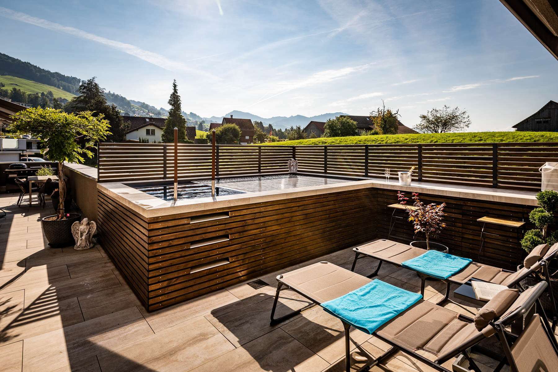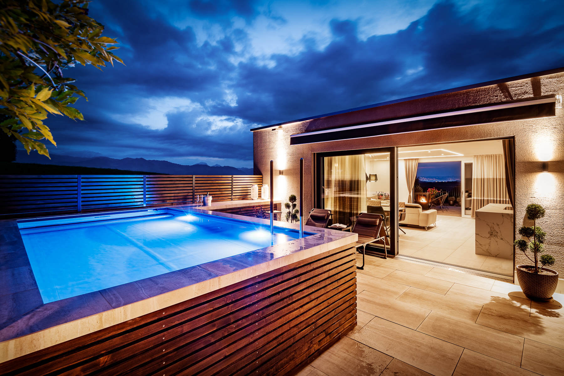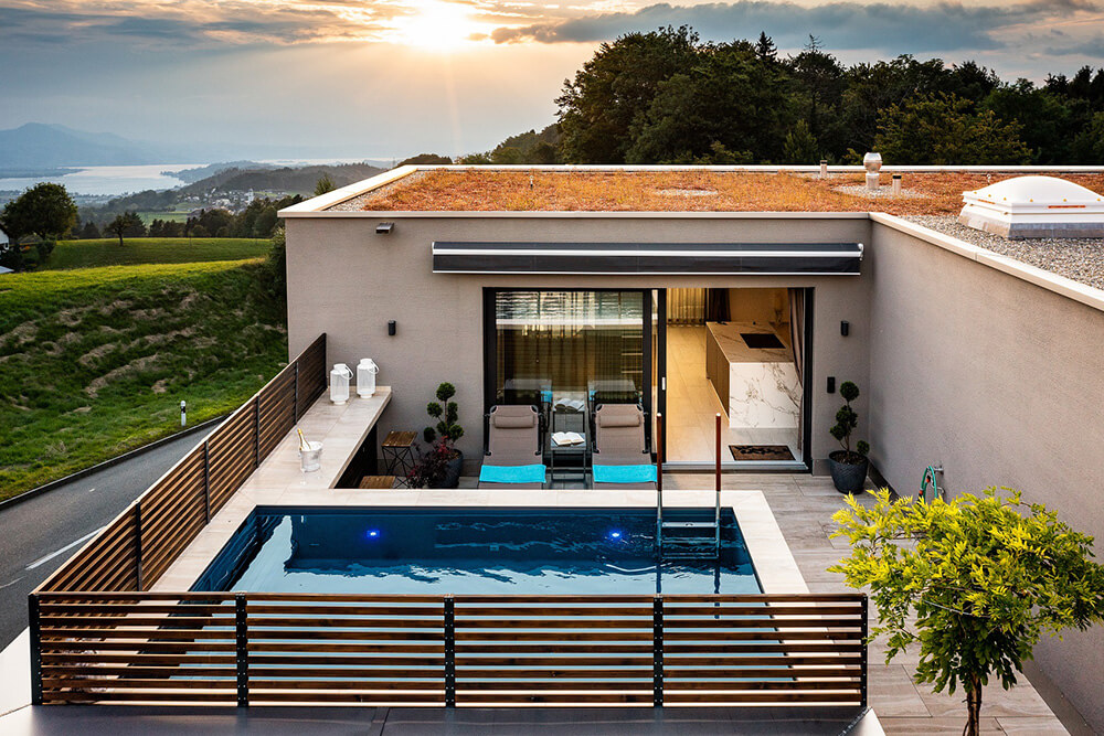 Die lobenden Worte der Preisrichter waren: „Diese Anlage beweist: für einen Pool ist immer Platz – selbst auf einer Terrasse. Obwohl das Haus direkt an einer Straße liegt, hat man eine Oase der Ruhe geschaffen, die mit viel Liebe zum Detail punktet. Auch die an sich zweckmäßige Einstiegsleiter wird als Hingucker inszeniert, und die Kombination von Holz und Stein schaffen ein gemütliches Wohlfühlambiente am Terras-See.“