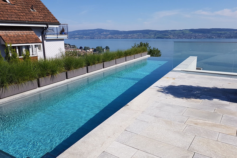 Wer grenzenlose Individualität schätzt, der entscheidet sich für ein Betonbecken. Von der Form bis zur Ausstattung können bei diesem Schwimmbad Wünsche und bereits vorhandene Gebäudestrukturen berücksichtigt werden. Die massive Bauweise sowie die Vielfalt an Ausbaumöglichkeiten und Materialien versprechen Freude für viele Jahre.